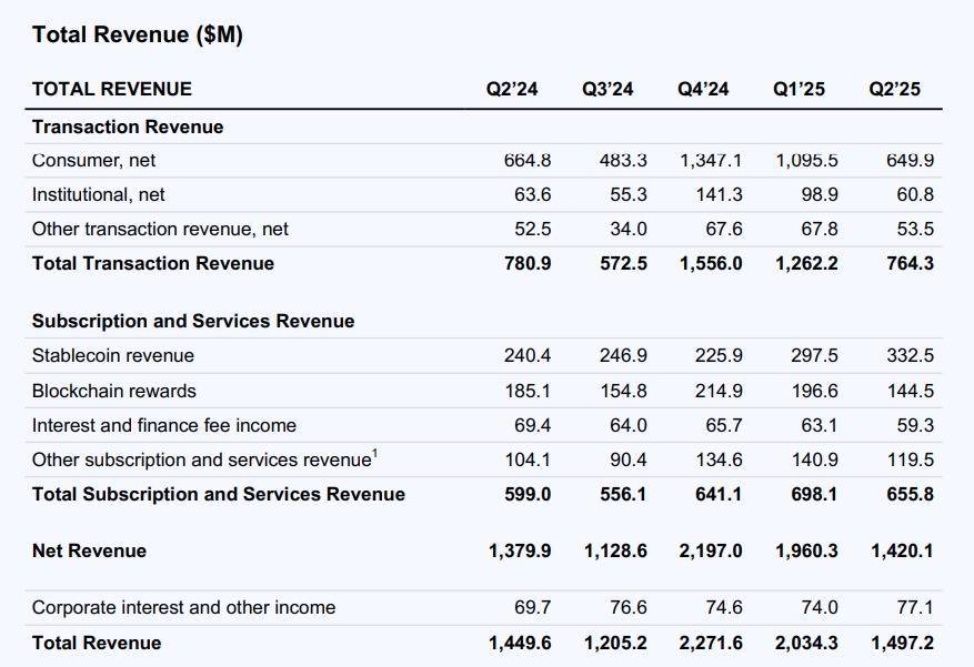 l 预计Q3订阅与服务收入将达到6.65亿至7.45亿美元区间,主要受益于:加密资产价格均值上升以及稳定币收入增长(7月USDC市值创历史新高)。