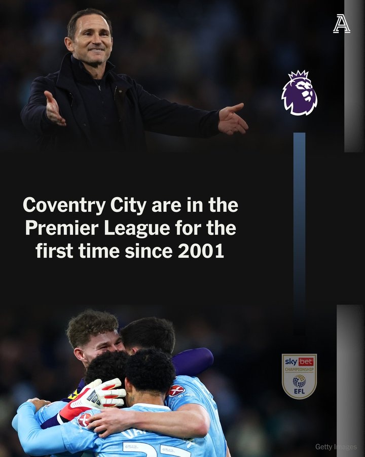 考文垂俱乐部在缺席25年后,正式升回英超联赛。就在8年前,他们还身处英格兰足球的第四级别联赛(英乙)。如今,他们穿越整个联赛金字塔的升级之路已宣告圆满。