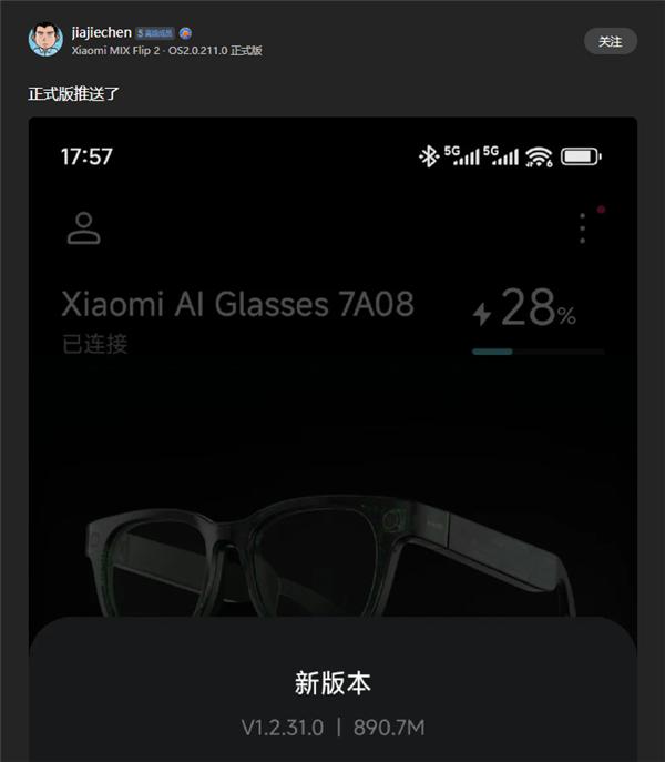 快科技 9 月 7 日消息,日前,小米社区有网友发帖称,小米 AI 眼镜发布 1.2.31.0 正式版固件更新厦门股票配资,固件包大小 890.7MB。